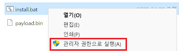 인스톨 파일에서 마우스 우클릭.