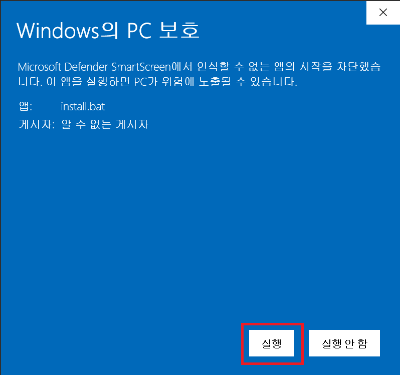 (아마도 관리자 권한 말고 그냥 실행해도 될 겁니다.)