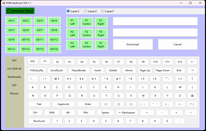 1/2/3 레이어 선택이 가능하고.. 키 세팅이 가능하네요.
