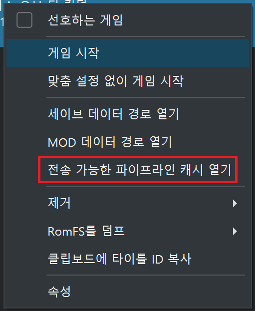 적용법은 게임 목록에서 적용할 게임 선택후 마우스 우클릭을하면